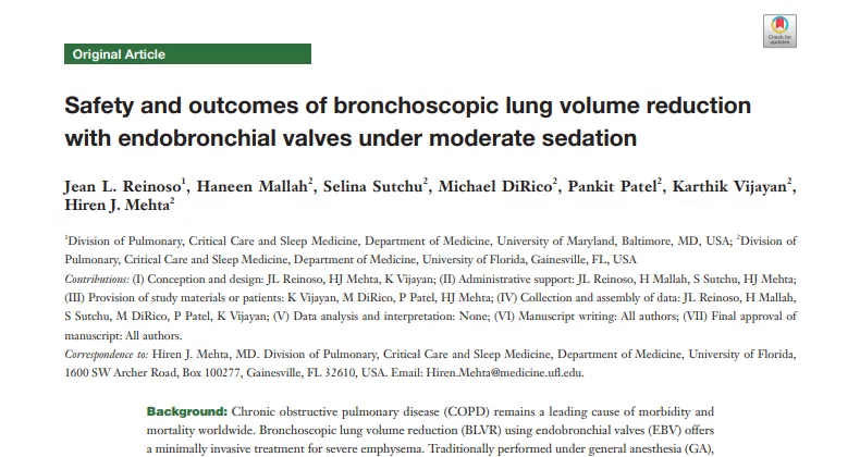 Safety and outcomes of bronchoscopic lung volume reduction with endobronchial valves under moderate sedation